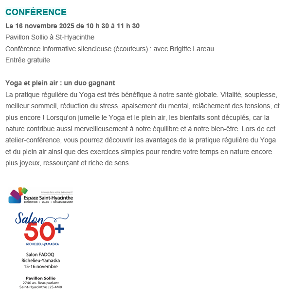 ✨ Veuillez noter que les célébrations pour souligner les 15 ans de VIVA YOGA aurons lieu le 12 décembre prochain.